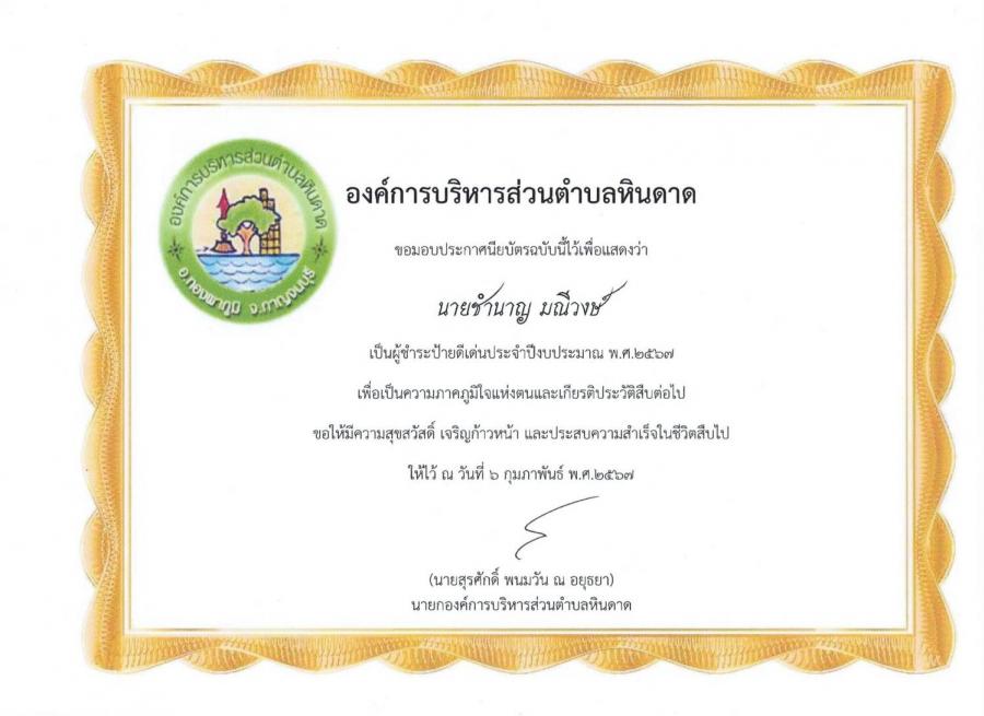 ประกาศยกย่องผู้ชำระภาษีดีเด่น ประจำปี 2567
